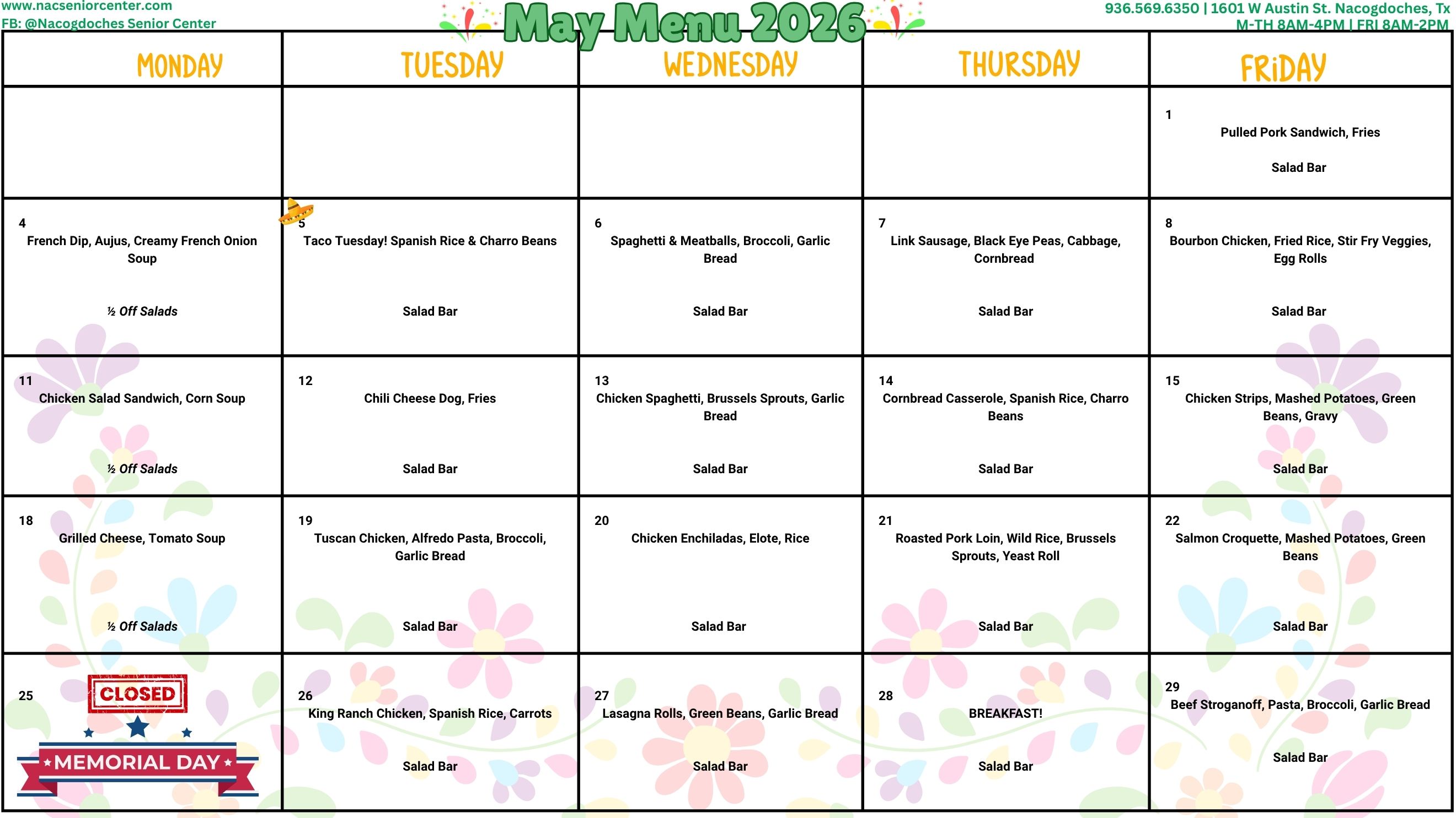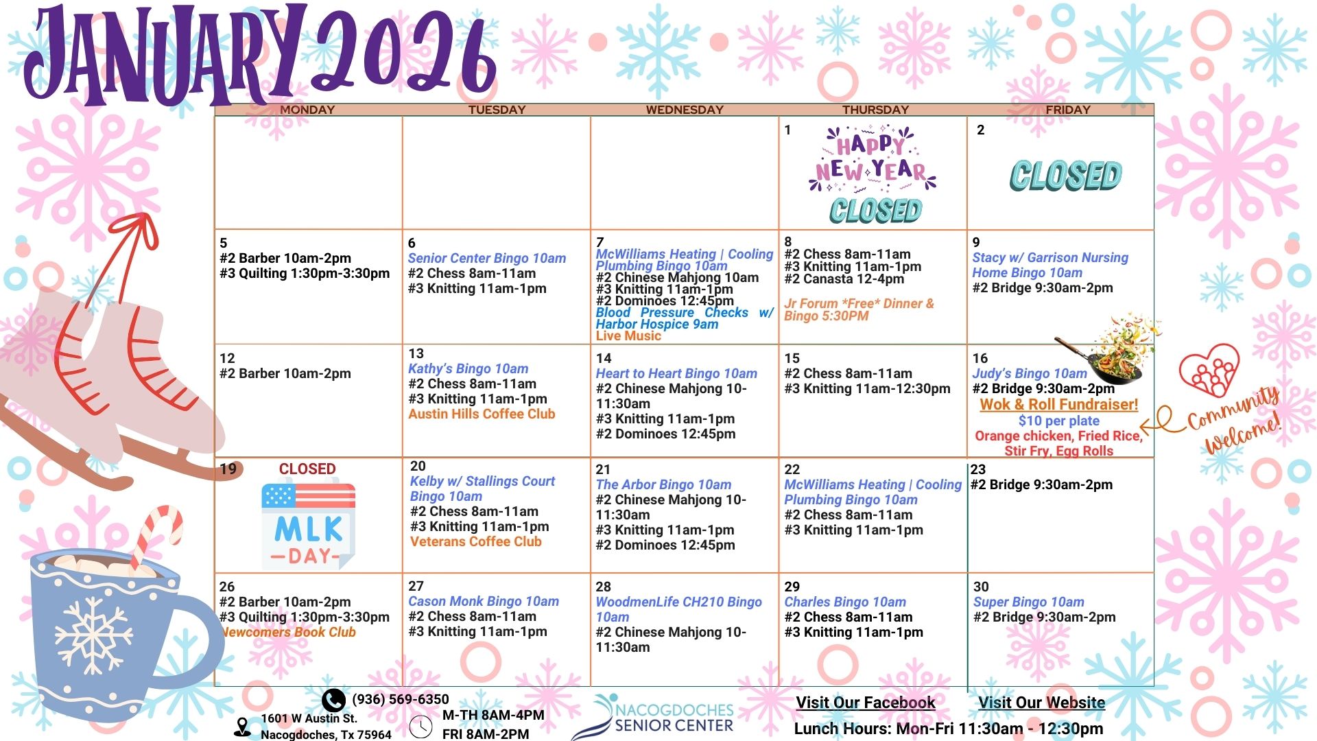 The Nacogdoches Senior Center provides nutritious meals to homebound seniors in Nacogdoches and Panola Counties.